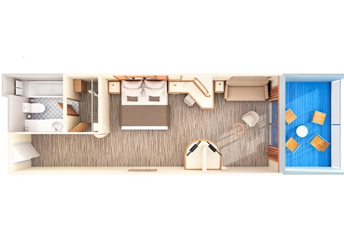 OS - Ocean Suite 26 m² (vrátane balkóna). 8. paluba vzadu; 9. paluba vpredu, vzadu. Výhody Suite. 1 500 € 750 € za osobu
