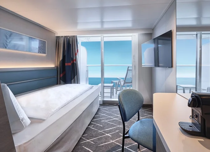 | SUWO - Weitblick Suite 45 m² + balkón 12 m² s hojdacou sieťou. Oddelená spálňa a obývacia časť, šatník. 14. paluba. Max 4 osoby. Výhody Suite. | 18 596 € 9 298 € za osobu | ||
