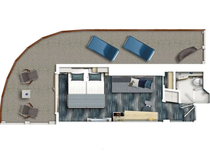 | VEPO - Kajuta s terasou Premium 17 m² + balkón 30 m² s hojdacou sieťou a ležadlami. 7-11. paluba. Max 3 osoby. | 2 772 € 2 772 € za osobu | ||
