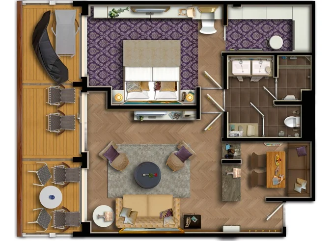 | SUTO - Themen Suite 54 m² + balkón 15 m² so stolom, ležadlom a hojdacou sieťou. Spálňa, obývacia časť, šatník. 10. paluba. Max 4 osoby. Výhody Suite. | 5 258 € 5 258 € za osobu | ||